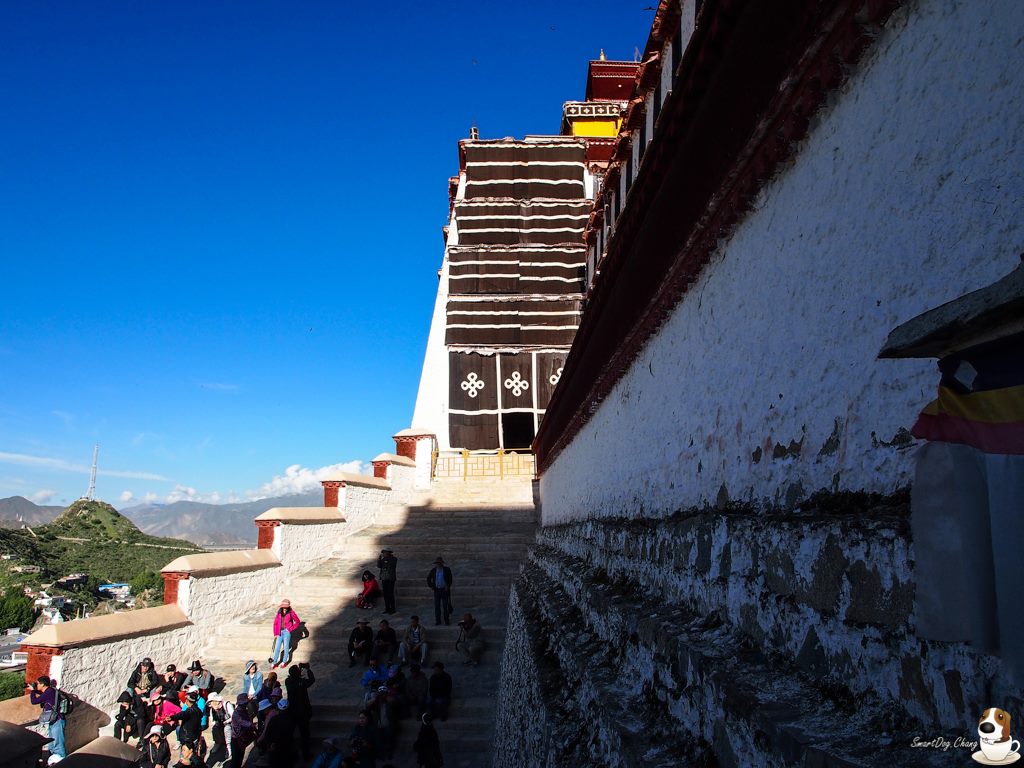 布達拉宮的內部是不能拍照的,至於內部長怎樣,實在是難以形容,有數座超高的佛塔用金子打造,上面鑲滿了寶石,只要有地方就有唐卡,有堆繡,看都看不完,還有無數佛經;或許是現任達賴喇嘛有來過台灣的關系,原本超時就罰錢的布達拉宮,我們⋯⋯明明有超時了,也沒有罰我們錢,而且喇嘛還握了每位團員的手,說希望台灣的朋友能再來,當然,這些話是回來才能說,在當地團員們可是不敢亂說話的
