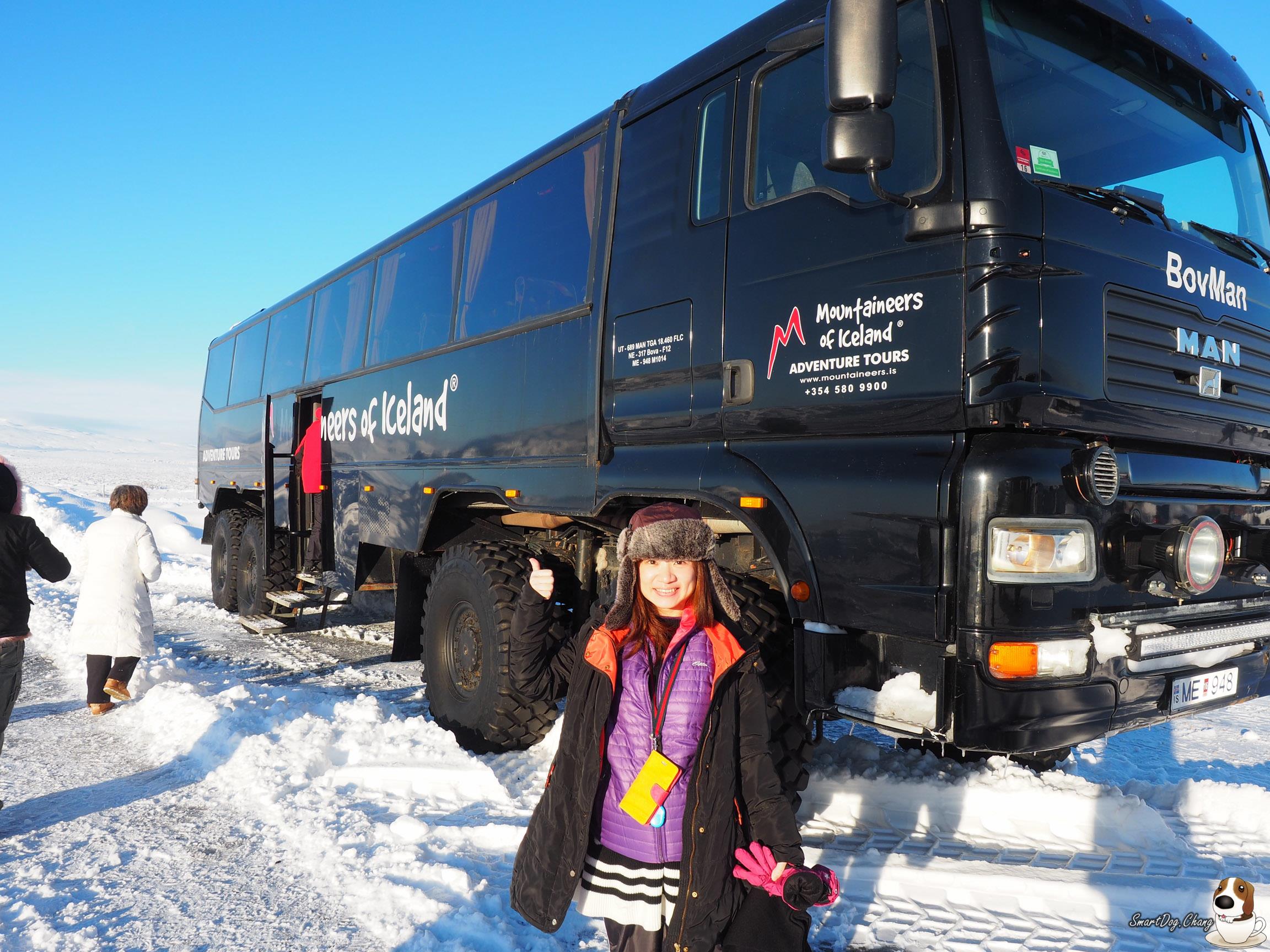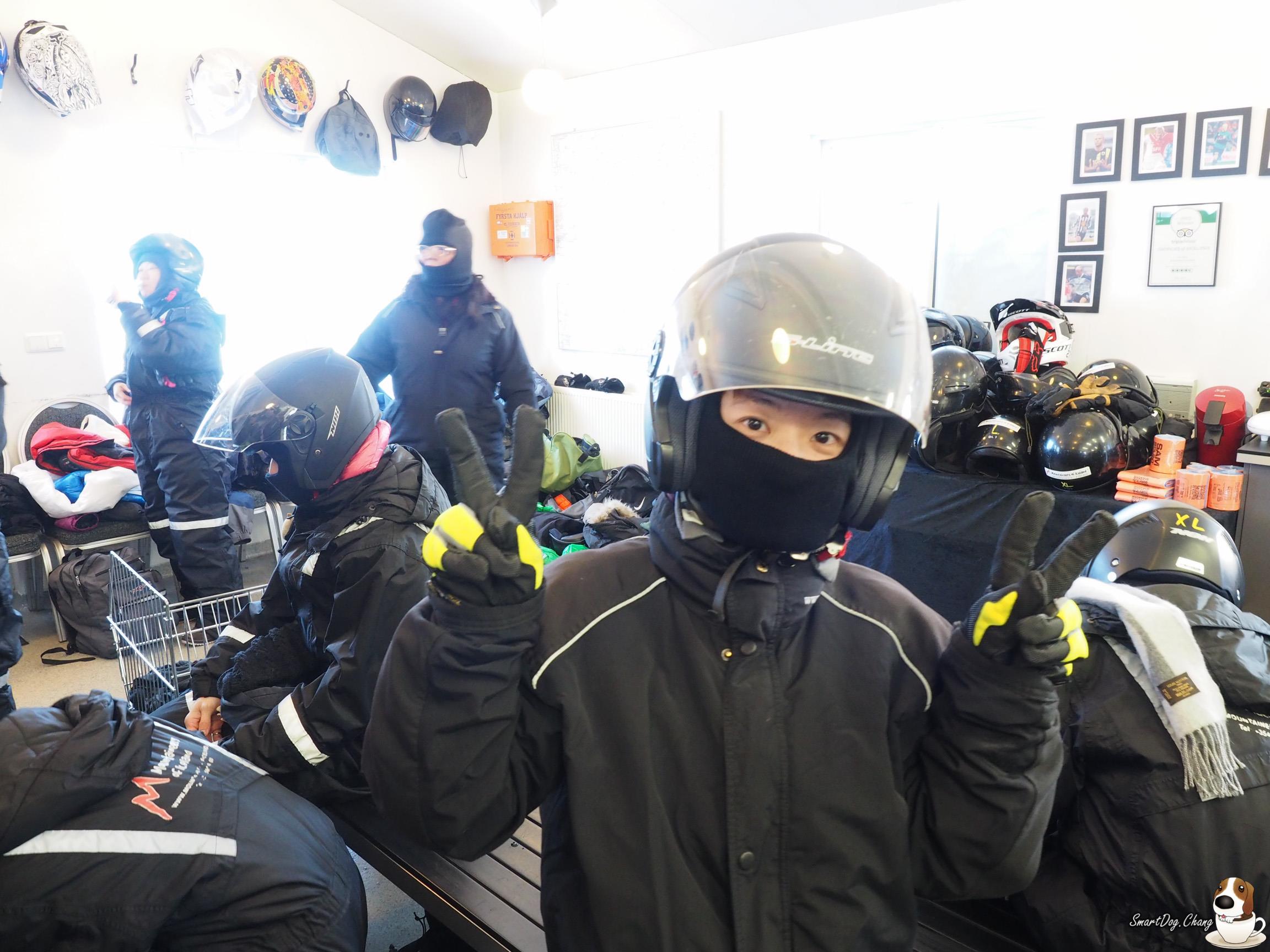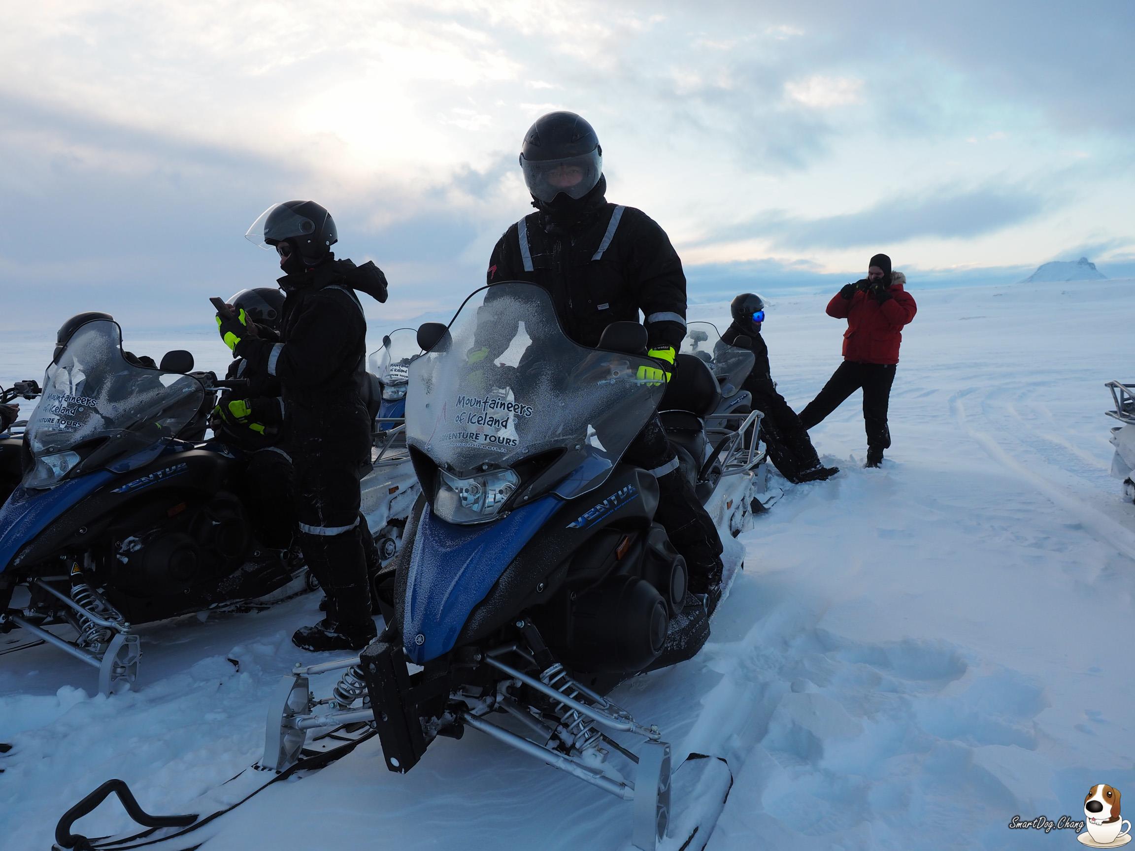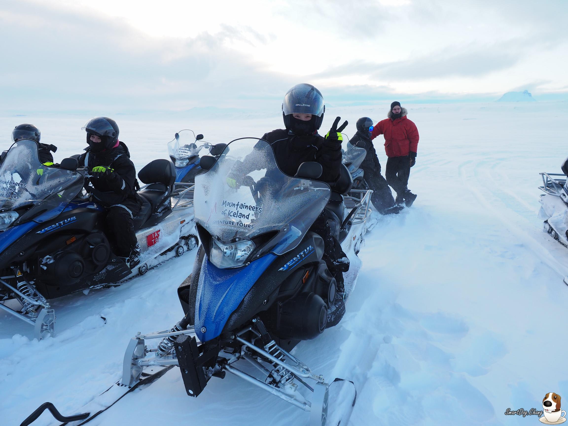看完 Gullfoss 瀑布!來到了今天重點,在冰川上騎雪地摩托車,小弟沒騎過重車,第一次騎,就是騎雪地的 XD
