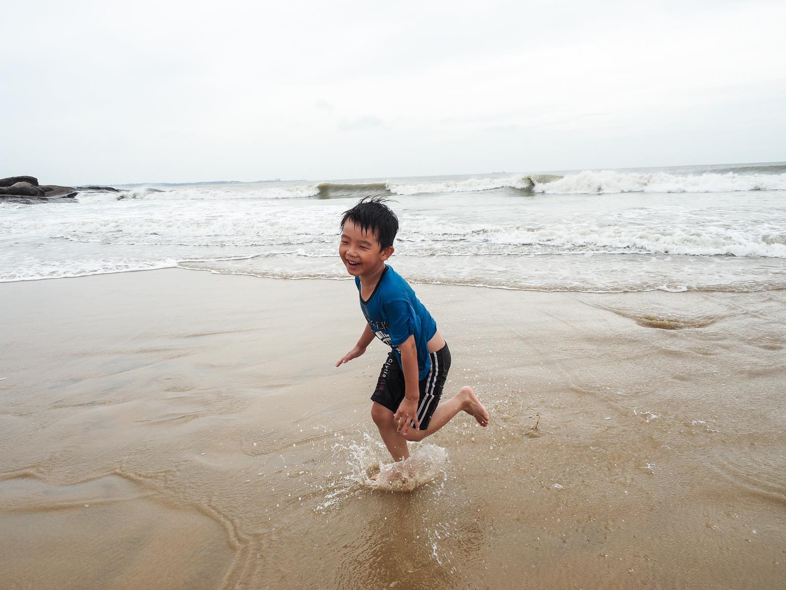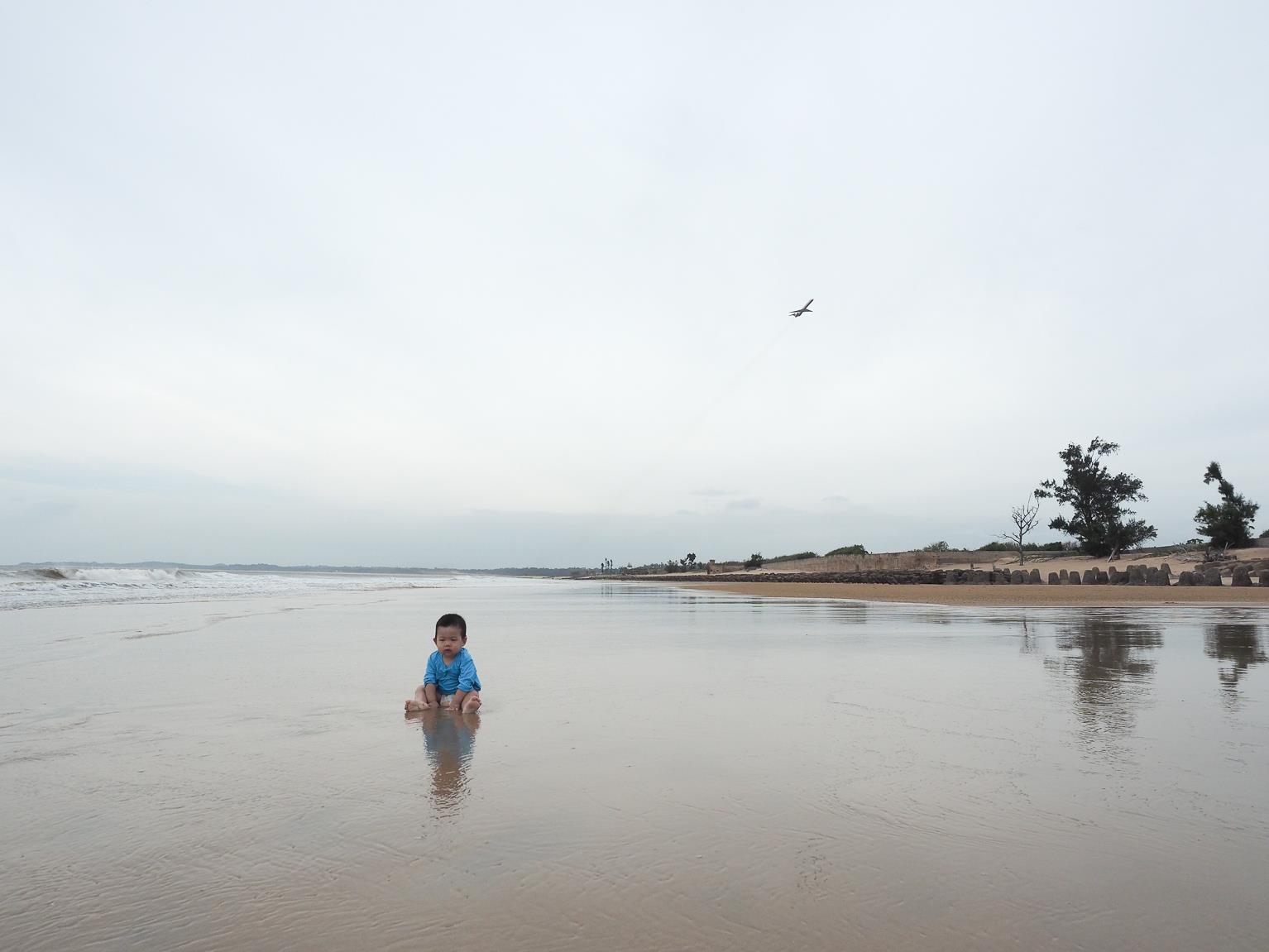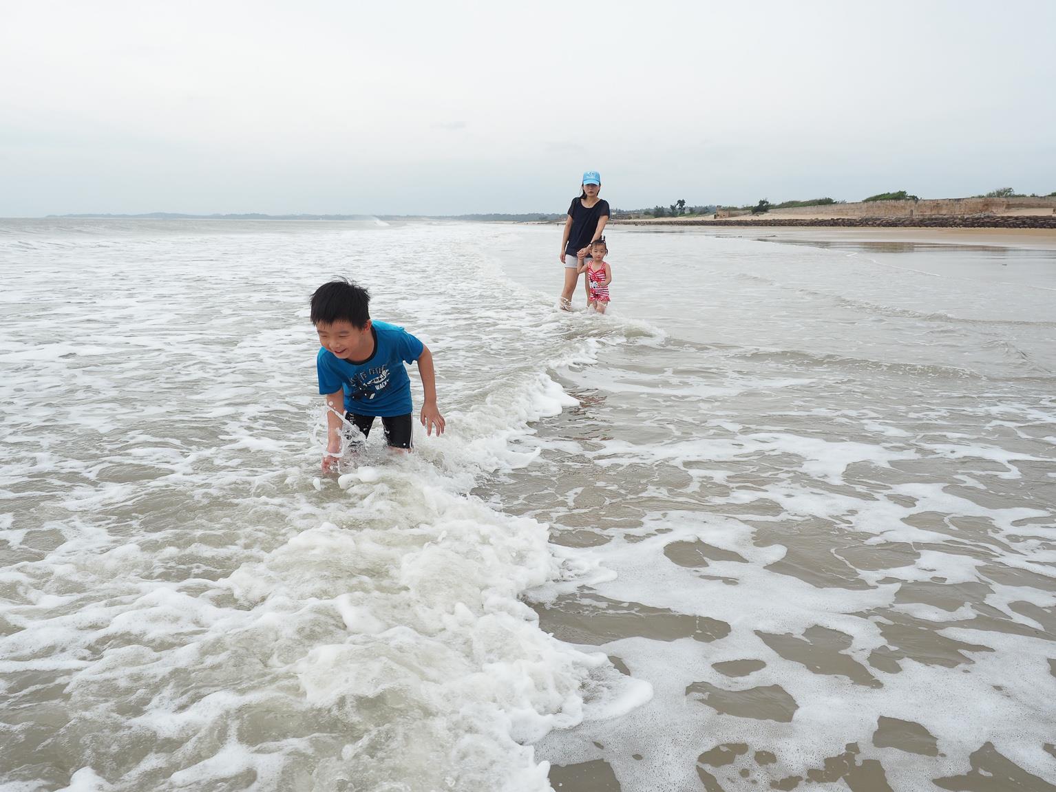 ↑因為昨天傍晚的天氣風太大,沒有讓小朋友好好的玩到水,所以今天一早,第一件事就是帶小朋友們來到成功海灘