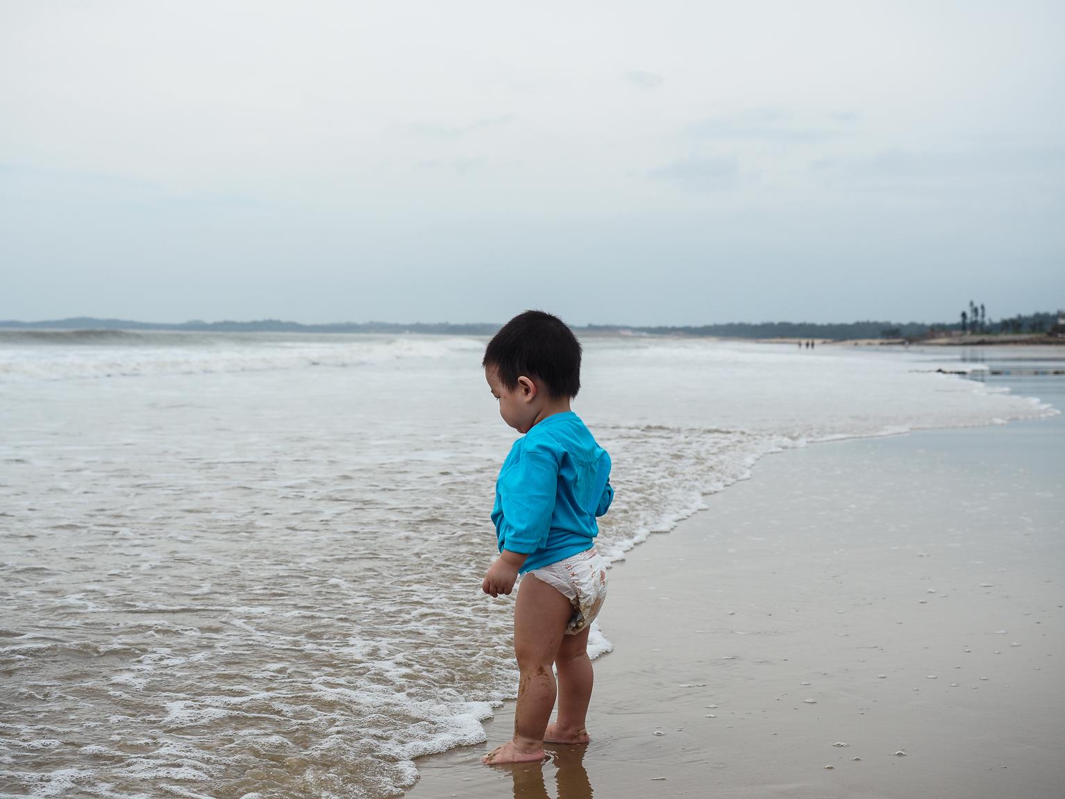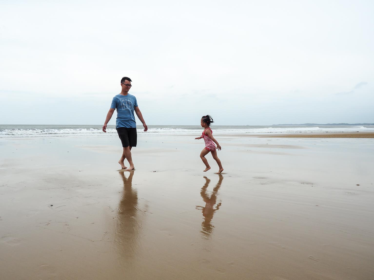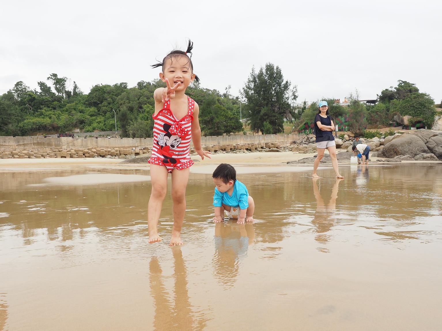 ↑因為昨天傍晚的天氣風太大,沒有讓小朋友好好的玩到水,所以今天一早,第一件事就是帶小朋友們來到成功海灘