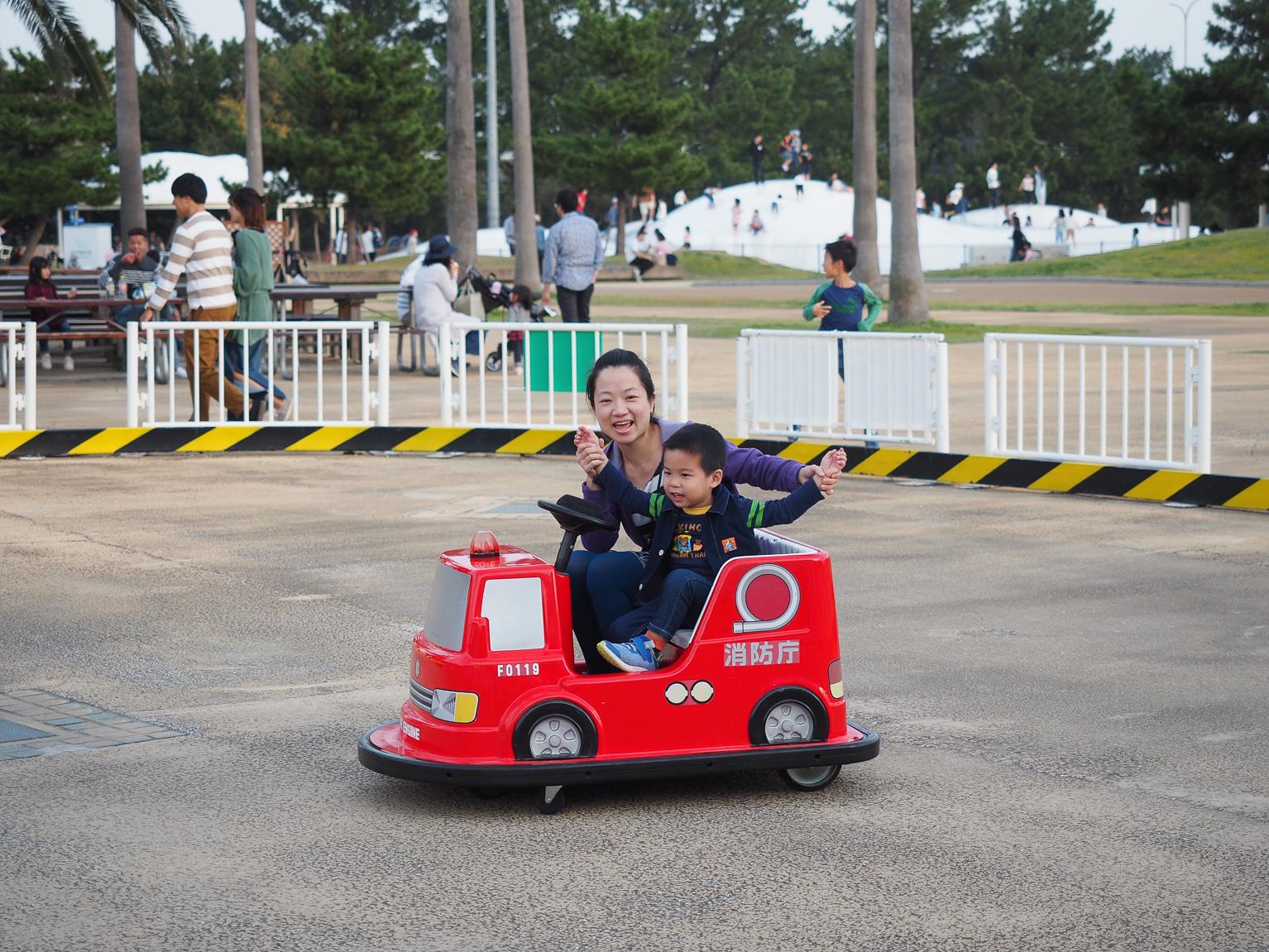 看完天守閣之後,時間其實已大大超過了原本預定的停留時間,其實大家都在考慮接下來是不是該按行程去海之中道公園,原本都要放棄了。後來想到說如果不去的話,可能會少了很多小朋友的往開心的畫面,心一狠!決定中午不吃了,就便利店隨便買個麵包什麼的,趕去海之中道公園!